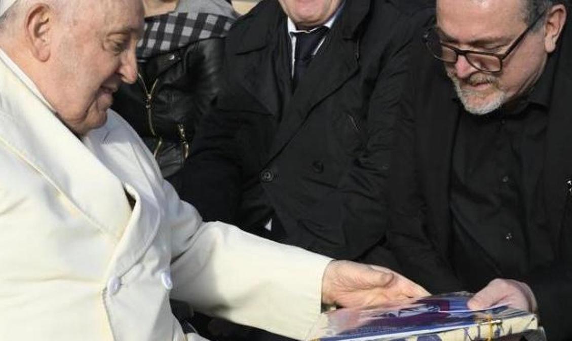 Il momento clou è arrivato quando Papa Francesco ha aperto il regalo: un salame, un tagliere e un coltello da oltre 30 cm!